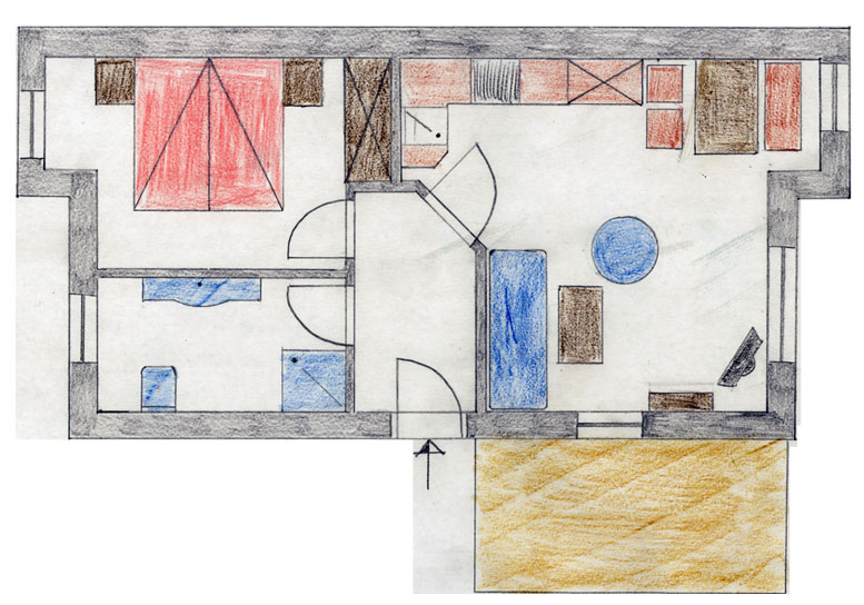 - Schlafzimmer (kühl und ruhig) mit Doppelbett (1,80 x 2,00 m), rückenfreundlichen Matratzen und geräumigem Schrank